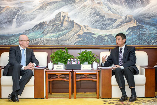3月28日下午,深圳市委常委、前海蛇口自貿片區管委會主任田夫會見了瑞銀集團財富管理全球聯席總裁Martin Blessing先生一行。雙方就前海與瑞銀在去年開展的相關合作進展情況進行了交流,并在聯手探索更多合作機會、共同建設前海深港國際財富管理中心、提升前海和深圳財富管理行業的國際化水平等方面達成共識。