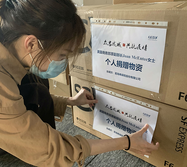 疫情暴發(fā)后,面對醫(yī)療物資極度緊缺的情況,前海再保險(xiǎn)全體員工同全國人民同舟共濟(jì)、共抗疫情,千方百計(jì)籌措捐贈(zèng)物資,以緩解醫(yī)療機(jī)構(gòu)的燃眉之急。除公司捐贈(zèng)醫(yī)療物資外,公司主要負(fù)責(zé)人還發(fā)動(dòng)海外友人籌措緊急醫(yī)療物資。美國商務(wù)部原副部長、美國MKBC國際有限公司董事長瓊•麥肯蒂(Joan McEntee)女士自購醫(yī)療物資并由前海再保險(xiǎn)協(xié)助捐贈(zèng)至中國的一線抗疫醫(yī)療機(jī)構(gòu)。其個(gè)人捐贈(zèng)的第一批物資已于2月29日捐贈(zèng)至華中科技大學(xué)同濟(jì)醫(yī)學(xué)院附屬協(xié)和醫(yī)院,包括230件隔離服、300件外科手術(shù)帽、450副外科鞋套,另有一批民用護(hù)目鏡通過前海再保險(xiǎn)捐贈(zèng)至深圳退役軍人紅星志愿服務(wù)隊(duì)。此外,麥肯蒂女士還號召強(qiáng)生等美國多家企業(yè)向武漢醫(yī)療機(jī)構(gòu)捐贈(zèng)了大量醫(yī)療物資。