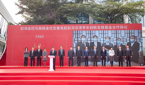 為貫徹落實《粵港澳大灣區(qū)發(fā)展規(guī)劃綱要》關(guān)于支持港澳青年在內(nèi)地發(fā)展的部署要求,發(fā)揮前海聯(lián)通兩個市場、對接兩種制度、暢通國內(nèi)國際雙循環(huán)的重要優(yōu)勢,推動香港青年在前海聚集發(fā)展,促進(jìn)香港更好融入國家發(fā)展大局,12月7日,前海金融控股有限公司與高鋒金融控股有限公司在前海青年夢工場簽署發(fā)起前海深港青年創(chuàng)新發(fā)展基金合作協(xié)議。前海金控董事長孟曉和高鋒金控行政總裁黃俊瑯(線上)出席儀式并簽約,香港中聯(lián)辦青年工作部副部長張志華視頻致辭。