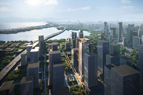 “前海之窗”方案以“莊重”、“典雅”、“人文”為設計理念,通過“天空”、“河流”、“海灣”、“山脈”為元素的塔樓觀景平臺設計,以浪漫主義情懷打造通向前海、深圳、世界的窗口意象。通過裙房退臺空間、觀景平臺等生態(tài)人文示范場景的打造,構筑深港金融文化匯聚融合的生態(tài)系統(tǒng),“前海之窗”將成為前海金融產(chǎn)業(yè)空間載體的一抹亮色。