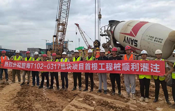 前海金融總部大廈項目于9月18日取得樁基礎(chǔ)工程施工許可證以來,緊鑼密鼓開展樁基施工相關(guān)準備工作。近日,該項目首根工程樁順利澆筑。