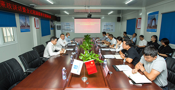10月20日,前海金控黨委書記、董事長孟曉同志在前海金融總部大廈項目工地現場,對項目工作人員進行集體廉政談話,并主持召開全過程跟蹤審計進場會議。