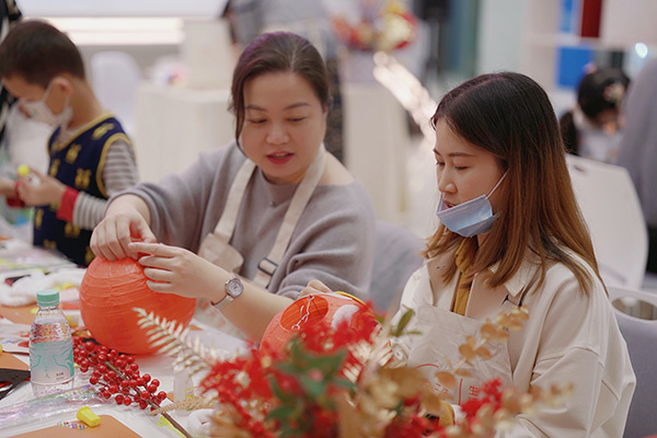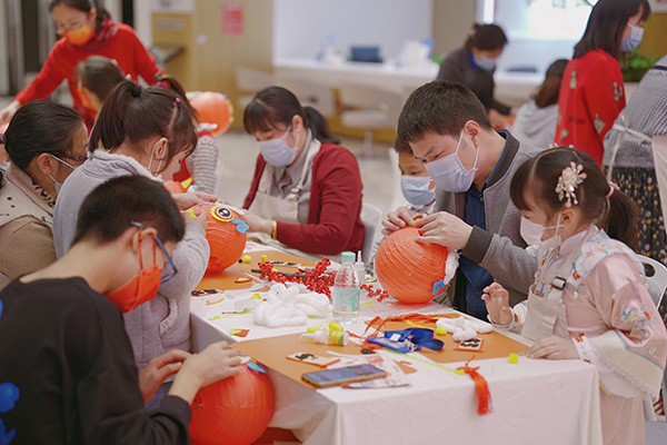 大家參與活動的熱情空前高漲,不少人攜家人一同參加,活動現場歡聲笑語、其樂融融。憨態可掬的醒獅燈籠和頗具挑戰的毛線戳戳繡,激發了大家的手工制作熱情。在老師的細心講解和演示下,孩子們同父母齊心協力,共同動手制作出飽含溫情和幸福的作品。