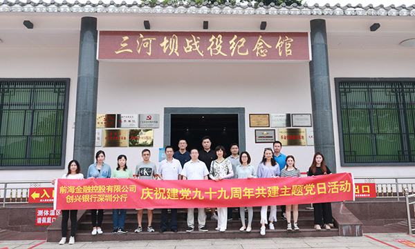 在中國共產黨成立九十九周年之際,為推動支部黨員深入貫徹落實習近平新時代中國特色社會主義思想和黨的十九大精神,推進“不忘初心、牢記使命”主題教育常態化,提高支部黨員黨性修養,近日,前海金控第二黨支部、第八黨支部聯合創興銀行深圳分行共赴廣東省梅州市紅色革命教育基地,開展慶祝建黨九十九周年共建主題黨日活動。
