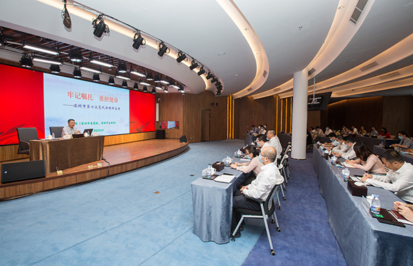 譚剛副院長以“七一”重要講話精神為指引,結合黨史學習教育,緊扣市第七次黨代會精神,詳細解讀了市第六次黨代會以來取得的突出成績,習近平總書記、黨中央賦予深圳的新時代歷史使命,未來五年深圳發展的奮斗目標和主要任務,以及深圳未來發展的目標任務、時間表、路線圖,重點闡釋了在新的起點建設什么樣的新時代經濟特區,以及關系經濟特區發展的相關問題。