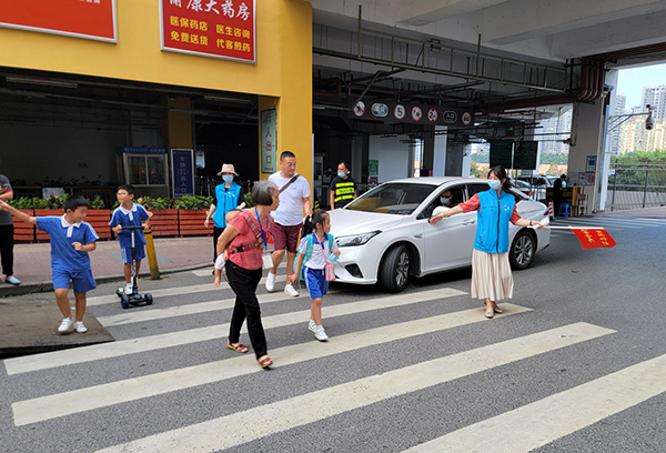 龍海家園是深圳最大的小區(qū)之一,橫跨桂灣三路、桂灣四路兩條市政道路。兩條道路在早晚高峰時段車流量較大,且桂灣三路一處人行橫道未設(shè)置信號燈,每天下午放學(xué)及下班時段經(jīng)常出現(xiàn)人車混流導(dǎo)致的交通混亂等狀況,社區(qū)需要志愿者在路口維持秩序,引導(dǎo)行人和車輛有序交替通行。
