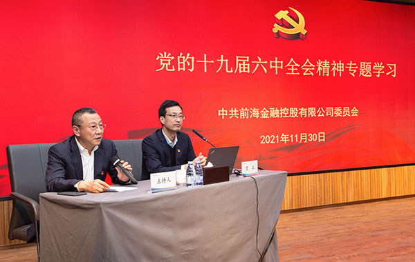 會議要求,全體黨員干部要進一步領會黨的十九屆六中全會精神,要切實把思想和行動統一到全會精神上來,在前海合作區黨工委的部署下,把學習貫徹黨的十九屆六中全會精神作為當前和今后一個時期的重要任務,堅持“依托香港、服務內地、面向世界”,在前海合作區“擴區”、打造全面深化改革創新試驗平臺、建設高水平對外開放門戶樞紐的征程中發揮金融優勢,貢獻金控力量,推動前海在“黃金十年”更加“生機勃勃”,在新的趕考路上交出新的優異答卷。