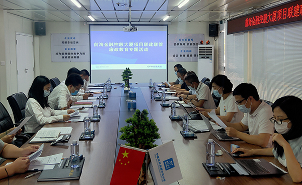 8月12日,前海金融控股大廈項目組織開展“聯建聯管”廉政教育專題活動,現場張貼廉潔宣傳海報,并召開專題學習會議。