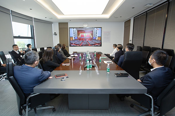上午10時整,隨著大會勝利開幕,收看直播的同志們全體起立,高唱國歌,心情與人民大會堂的各位黨代表一樣,振奮鼓舞。開幕會歷時2個小時,習近平總書記的報告激蕩群情、催人奮進,現場人員認真聆聽、深入學習領會大會精神,會場內不時響起熱烈掌聲。